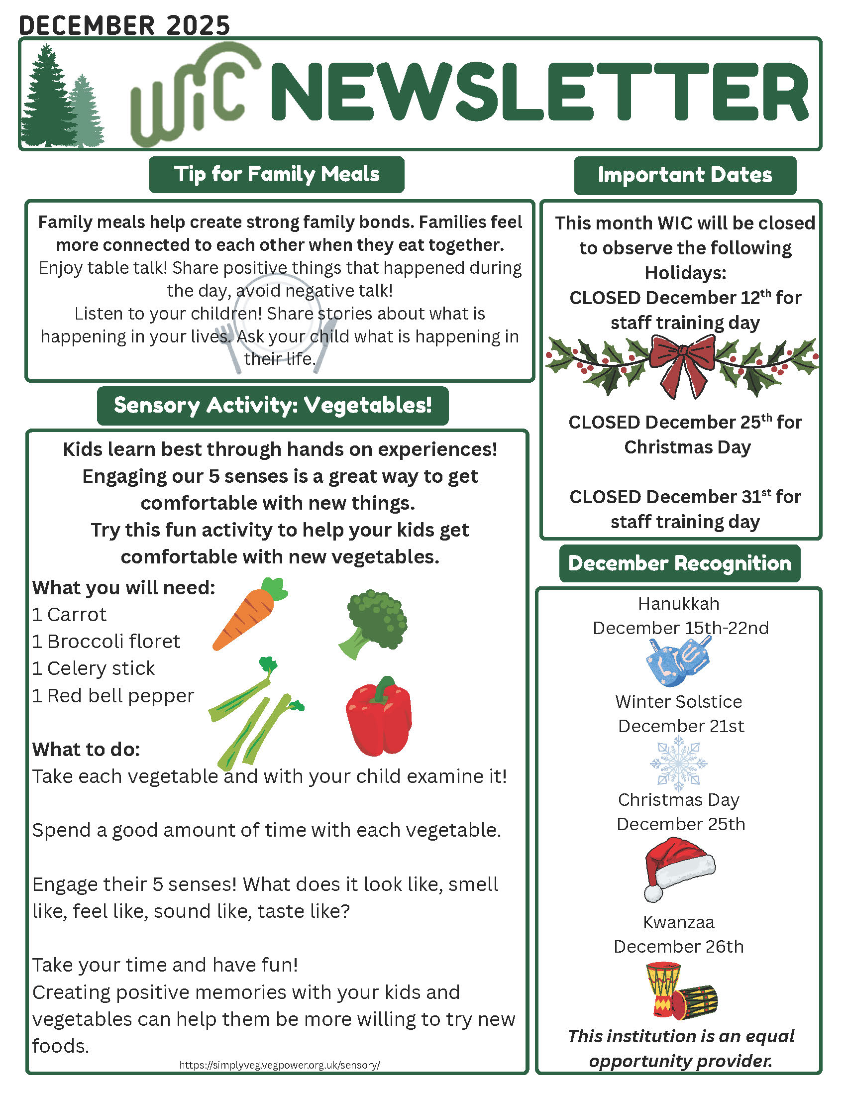 WIC is a health and nutrition program for families. WIC offers built-in support so that you can become confident parents of healthy, strong kids. We’ve got your village right here! WIC has so much to offer: